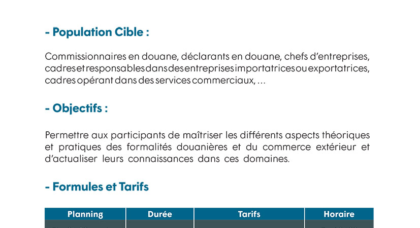 | Ecole pratique de Commerce:Formation Continue ,Cours du Soir ,Techniques et Procédures de dédouanement des Marchandises:Formulaire d'inscription Télécharger |