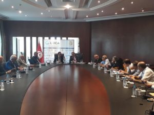 انطلاق اشغال مجلس الاعمال المشترك التونسي العراقي، برئاسة السيد منير المؤخر، رئيس المجلس من الجانب التونسي والسيد صادق هاشم المعموري ناءب رئيس الاتحاد الغرف العراقية ورئيس غرفة تجارة بابل من الجانب العراقي ، في مقر اتحاد التونسي للصناعة والتجارة والصناعات التقليدية. الثلاثاء 10 سيتمبر 2019.