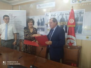 Signature d'une convention de partenariat entre la Fondation de l’Education pour l’Emploi Tunisie EFE-Tunisia, filiale de l’EFE Foundation organisation représentée par son Directeur Général Mme Lamia Chaffai SGHAIER et la Chambre de Commerce et d'Industrie de Tunis représentée par son Président M.Mounir MOUAKHAR
